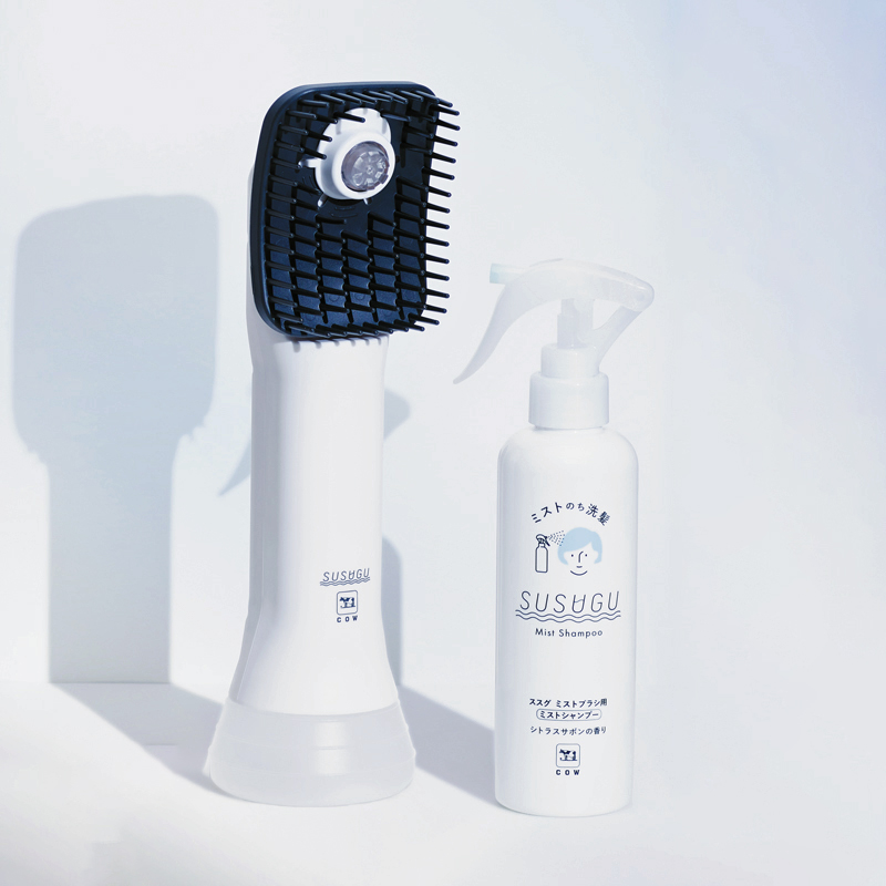 SUSUGU(ススグ) は、牛乳石鹸が4年の歳月をかけて生み出した、“水を使わない洗髪”という発想。
